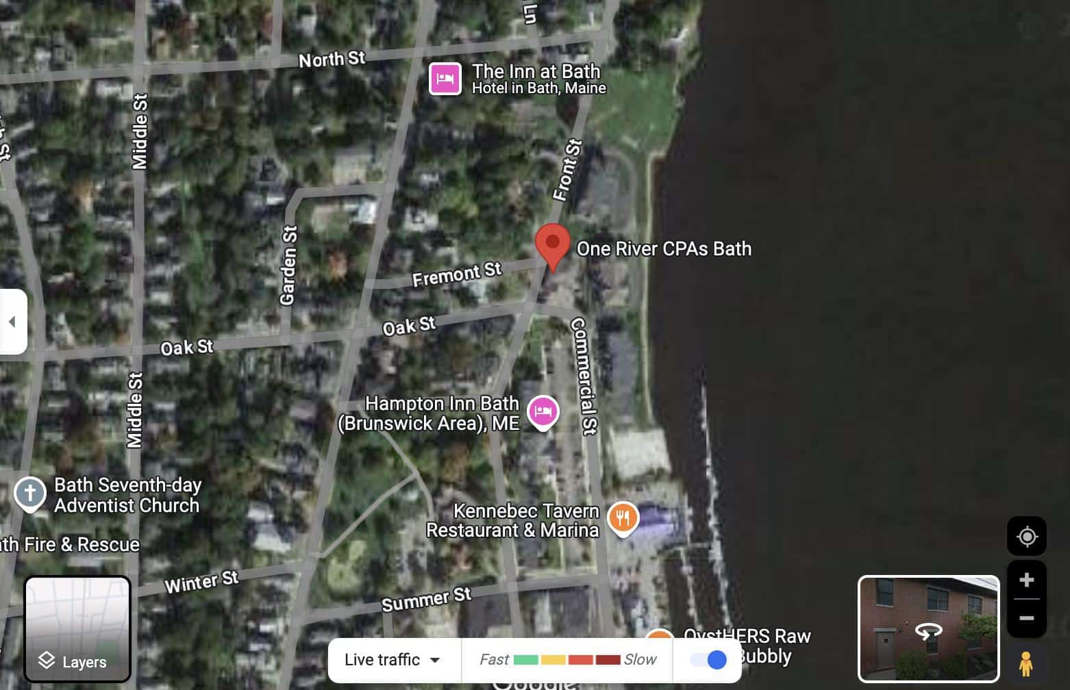 One River CPAs’ Oakland office serves people and businesses in Oakland, Waterville, Fairfield, Skowhegan, Bangor, and several other surrounding towns.